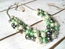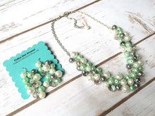 Mint Green Gray 3 Piece Jewelry Set - Necklace, Earrings, Bracelet - Wedding Bridesmaid Personalized Pearl cluster