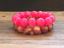 Pink & Purple 2 stretch bracelets, beaded jewelry, bead stretchy bracelet, rainbow friendship arm candy stacking hot dark pink