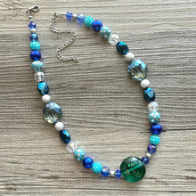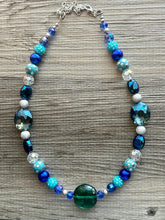 Dress up any outfit - great for a night out or with a white tee! 17 Inch Necklace with a 4 inch silver extender chain and silver lobster clasp. This is an eclectic strands of faceted acrylic and handmade glass beads.