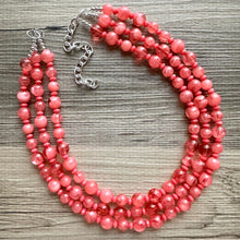Coral Summer Sunrise Big Bead Necklace, 3 Strand Statement Jewelry, Chunky bib bridesmaid or everyday jewelry pink red tangerine