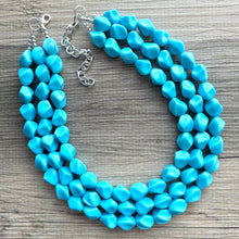 Dress up any outfit - great for a night out or with a white tee! 16 Inch Necklace with a 4 inch silver extender chain and silver lobster clasp. Gorgeous blue acrylic faceted beads are a gorgeous color!
