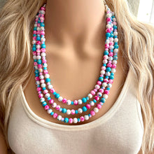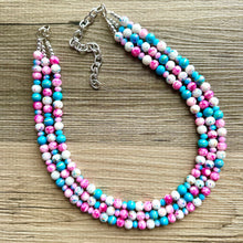 A fun confetti collection of blues and pink acrylic and glass beads.