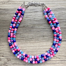 Cotton Candy Pier Necklace, Pink & blue Gender Reveal Party Present, blush pink baby blue chunky beaded royal blue hot pink earrings