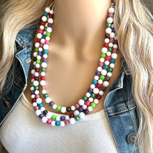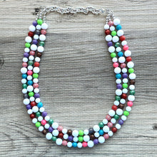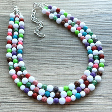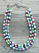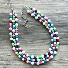 Glitter Berry Statement Necklace, chunky beaded jewelry, jewel tone color block beaded jewelry colorful rainbow set green blue pink white