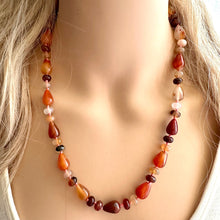 We love this gorgeous necklace, made with Natural carnelian Beads. It is 19” plus a 4” extender chain.
