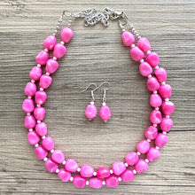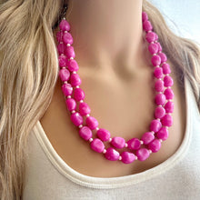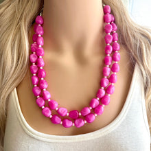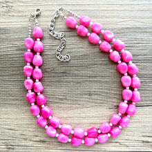 Bright & fun Pink statement necklace! Two layers of creamy, pink acrylic beads.