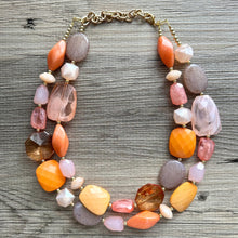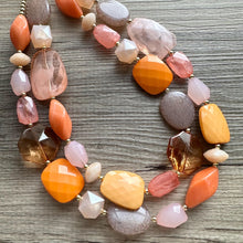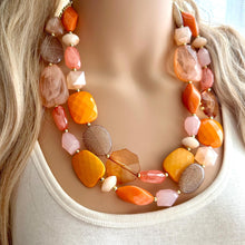 Summer Sunshine Statement Necklace, chunky bib beaded jewelry, Rainbow jewelry, coral peach orange gold pink, beaded acrylic jewelry