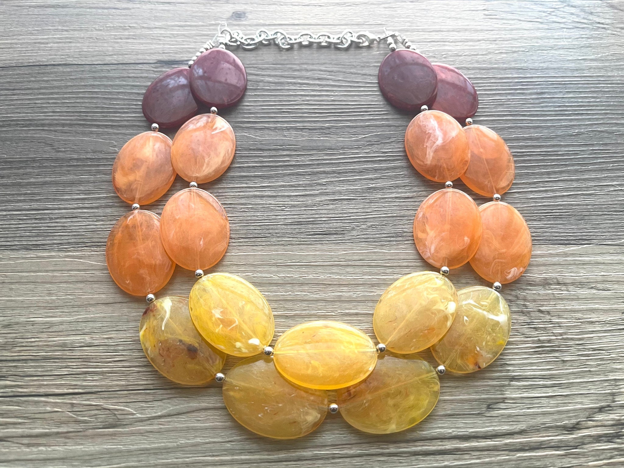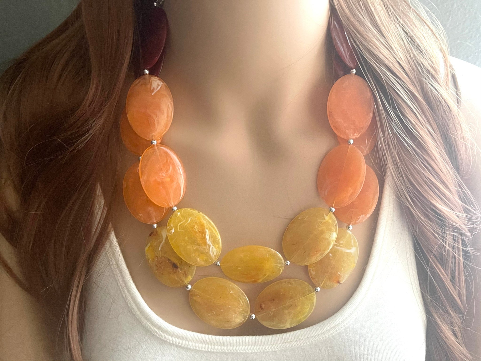 Yellow Orange Red Chunky Statement Necklace, Big beaded jewelry, multi strand Statement Necklace, red yellow jewelry earrings