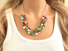 Great necklace for the holiday season! Various shades of gray, white, silver, red, and green :)