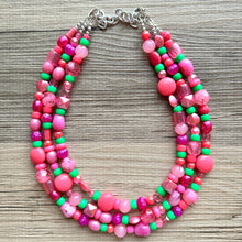 Anna Marie’s Chunky Statement Necklace, Big beaded jewelry, Triple Strand bib chunky Necklace, pink green coral jewelry, beaded jewelry