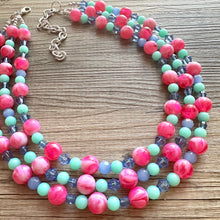 Dress up any outfit - great for a night out or with a white tee! 16 Inch Necklace with a 4 inch silver extender chain and lobster clasp. This is an eclectic bunch of acrylic beads in complimenting colors. A total conversation starter!
