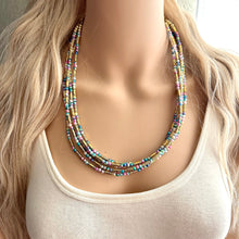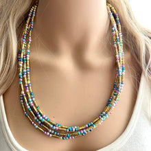 Hundreds of acrylic beads and exactly 100 gold etched beads collide in this cosmic rainbow confetti necklace.