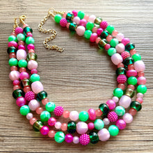 Triple strand Watermelon Summer necklace.
