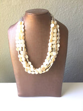 Cream Statement Necklace, Extra chunky multi-strand jewelry, Geometric Beaded Jewelry, off white bib necklace, shell necklace