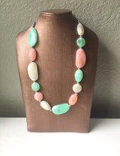 Long Peach Mint Cream Statement Necklace, Chunky Beaded Necklace, Mint Green Jewelry, long necklace, green Necklace, peach beaded jewelry