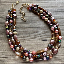 Fall Coffee chunky necklace, brown beaded jewelry, resin beaded Mocha necklace, brown beaded necklace, cinnamon necklace tan champagne pink