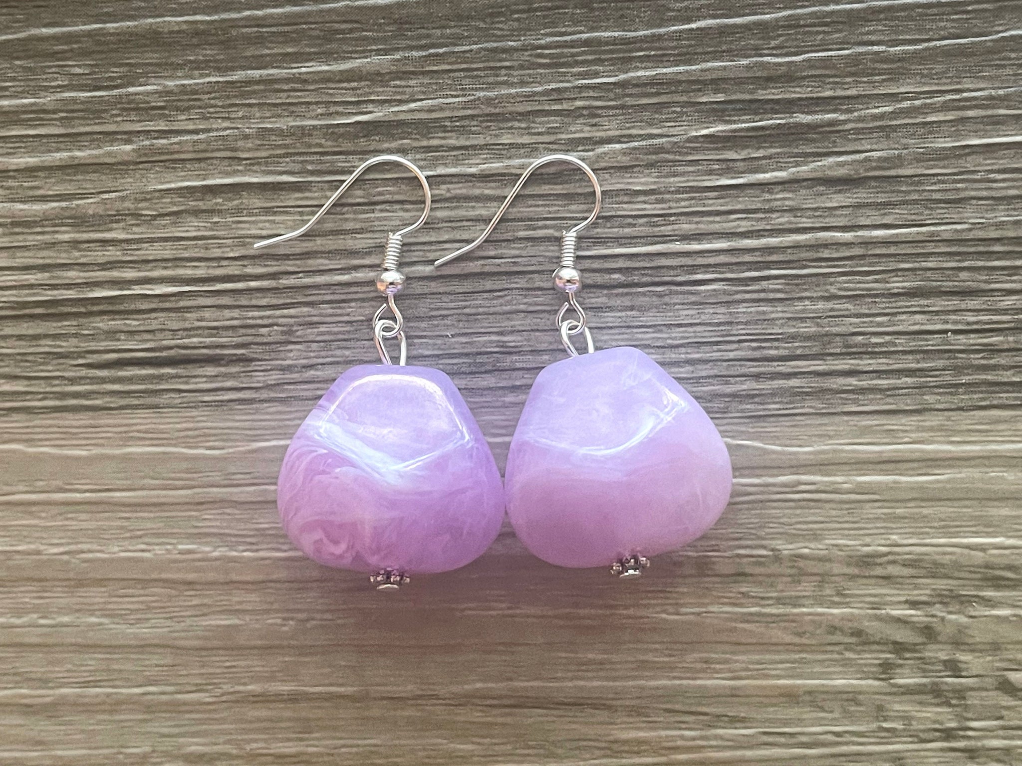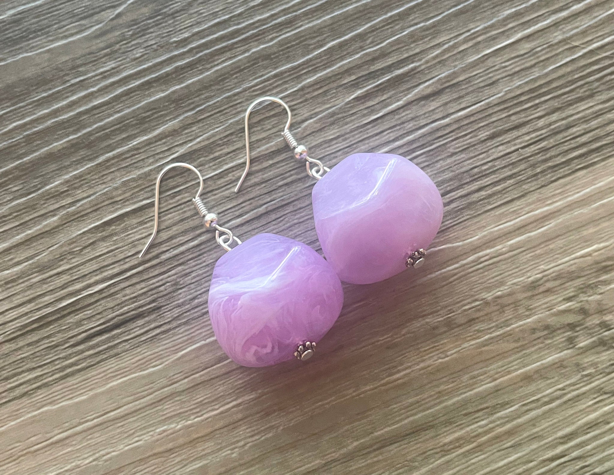 A classic color that never goes out of style! Each bead is one of a kind, and has swirls of multi-toned light purple and white. Each bead has a "stained glass" look - very chic and elegant.
