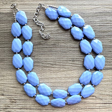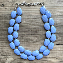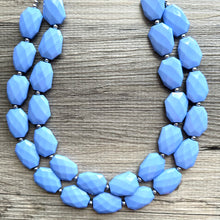 Dress up any outfit - great for a night out or with a white tee! 16 Inch Necklace with a 4 inch silver extender chain and silver lobster clasp. Gorgeous blue acrylic faceted beads have a sparkle and shine that catches in the light!