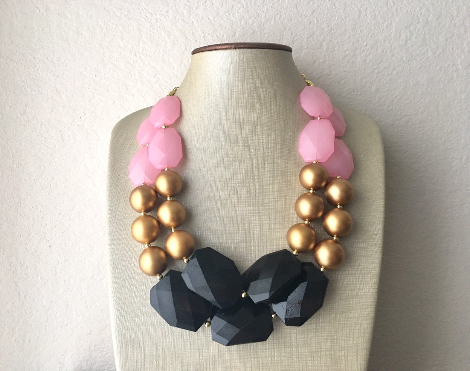 16 Inch Necklace with a 4 inch gold extender chain and gold lobster clasp. This color combination was requested as a custom order and I just LOVE IT!