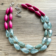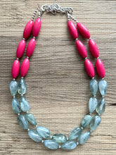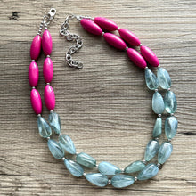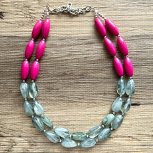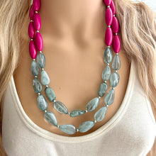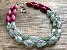 17 Inch Acrylic Necklace with a 4 inch silver extender chain and silver lobster clasp. Big beads are separated with small silver beads.