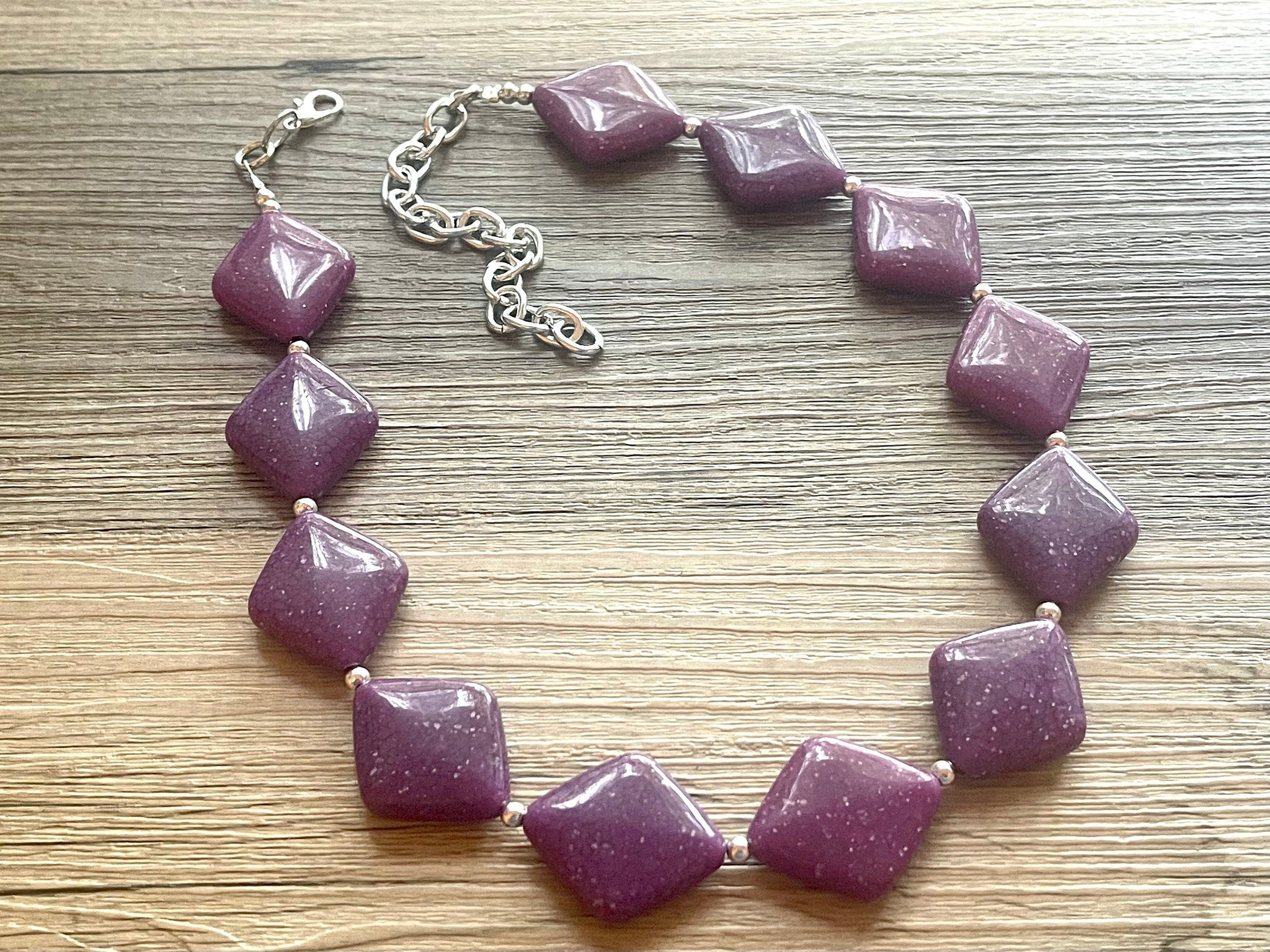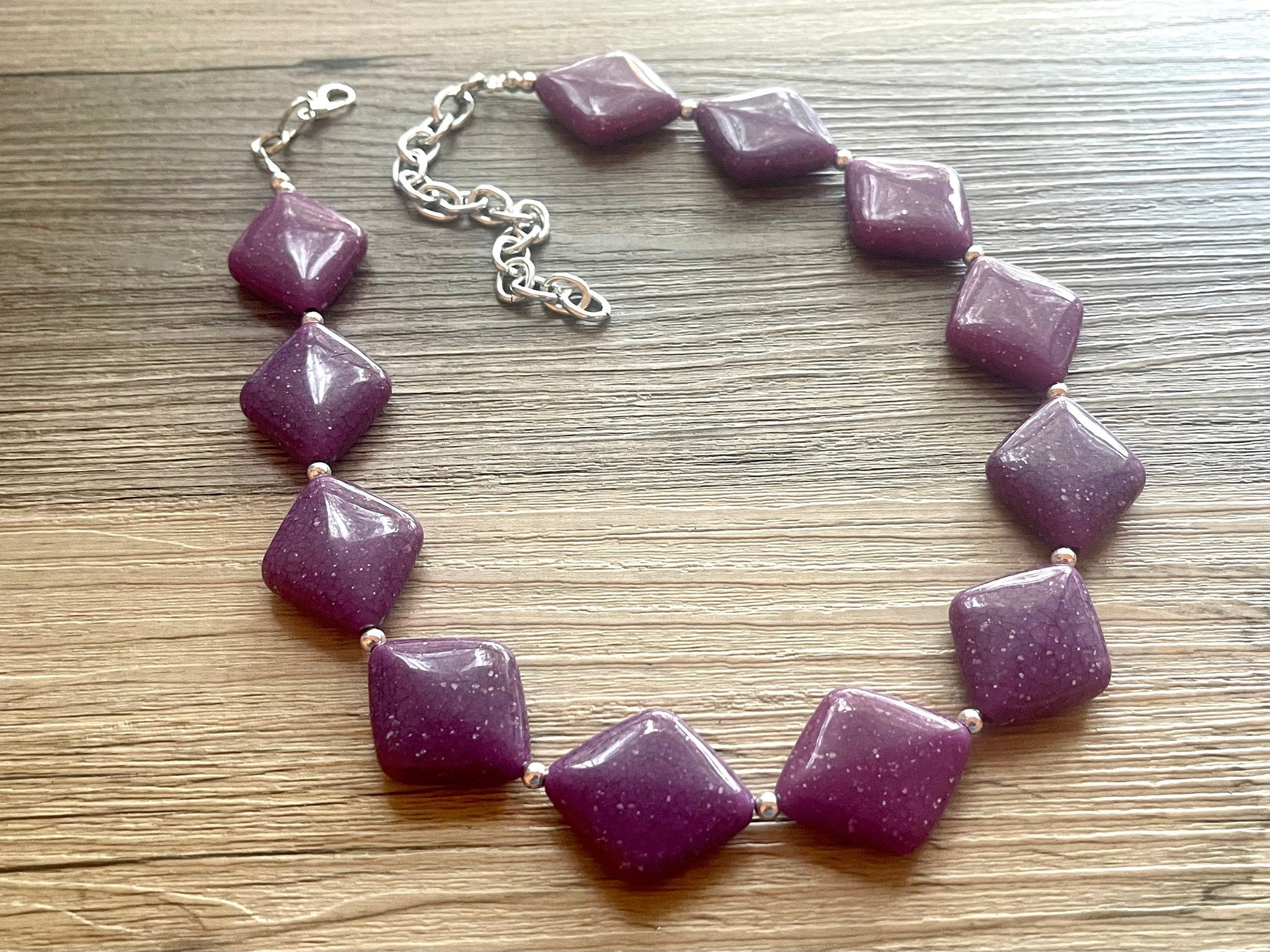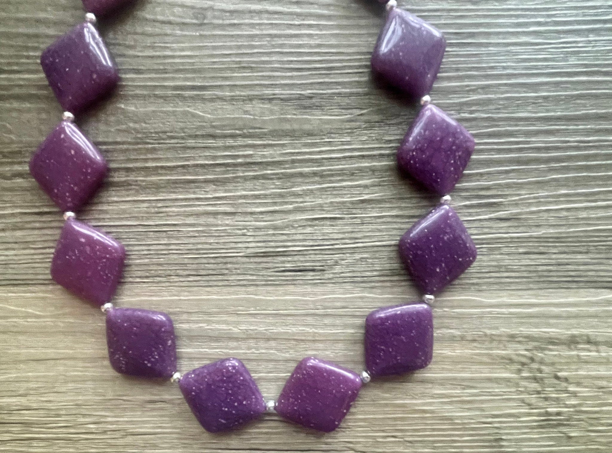 A great statement piece! A single layer of bright purple, acrylic beads. Each acrylic bead is spaced with a small silver bead to give this a polished look!