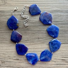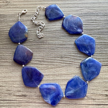 Royal Blue Chunky Statement Necklace, Big beaded jewelry, Single Strand bib Statement, bridal bridesmaid wedding silver earrings