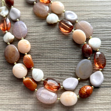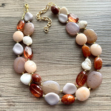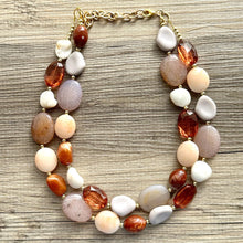S’more Happy Chunky Statement Necklace, Big beaded jewelry, Double Strand Statement brown bridesmaid wedding cream chocolate gold