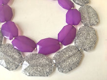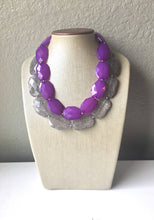 Purple & Gray Necklace, multi strand jewelry, big beaded chunky statement necklace, purple necklace, bridesmaid necklace, gray necklace