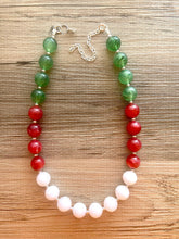 Great jewelry for the holiday season! Shades of red, white, and green acrylic beads in a color block style :)