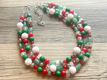 Great necklace for the holiday season! Various shades of red, green, and white acrylic beads in our signature confetti style :)