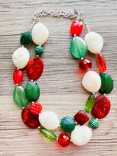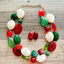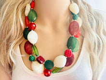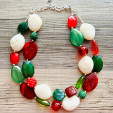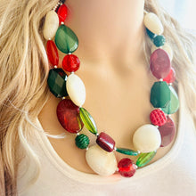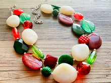 Great necklace for the holiday season! Various shades of red and green acrylic beads in our signature confetti style :)