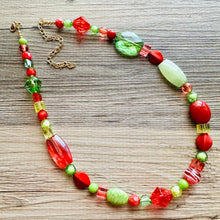 Great necklace for the holiday season! Various shades of red and green acrylic beads in our signature confetti style :)