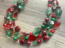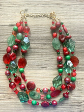 Great necklace for the holiday season! Various shades of red and green acrylic beads in our signature confetti style :)