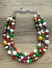 Merry Christmas Necklace, Red & Green Holiday Jewelry, Christmas Jewelry, Gold silver Jewelry, Beaded Christmas Gift Present