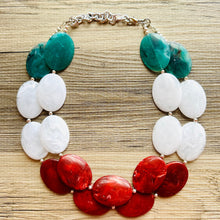 Mrs. Claus Necklace, Red & Green Holiday Jewelry, Christmas Jewelry, Red Green Jewelry, Christmas Gift Christmas Present white santa