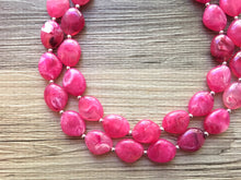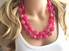 Dark Pink Chunky Statement jewelry set, Big bib beaded Double Strand Statement Necklace earrings, magenta bridesmaid wedding Magnolia