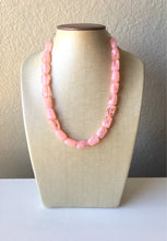 A great statement piece! One layer of peach acrylic beads that are cube shaped so they catch the light beautifully.