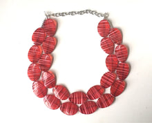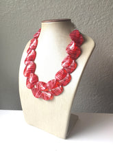 2 Strands of oval wavy beads that are translucent with pink painted accents. Hangs around 16 inches long with a three inch extender chain.