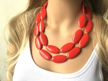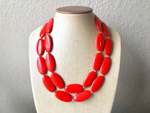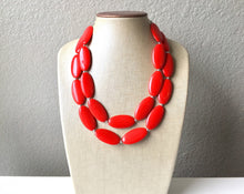 Red statement Necklace, Double strand bright red jewelry, big beaded bib chunky statement necklace, red jewelry, red geometric necklace