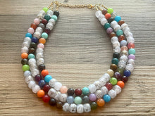 Such a fun and HAPPY piece!! Marble acrylic beads dance with painted gold and white beads - perfect for all happy occasions :-D