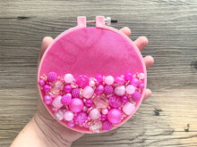 So colorful! 🤩 5” embroidery hoop ready for wall hanging by its metal clasp. This is handmade and a true labor of love, each bead is hand sewn onto the cotton fabric.