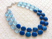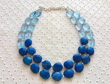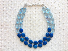 Big Bead light Blue & royal blue Necklace - Double Strand Statement Jewelry, Chunky bib bridesmaid or everyday bubble jewelry