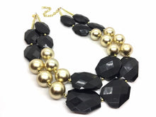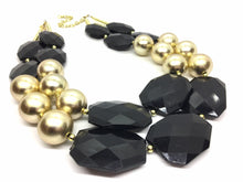 Black & Gold Necklace, Double strand gold jewelry, big beaded chunky statement necklace, black necklace, gold jewelry, gold necklace