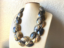 Black & Gold Necklace, Double strand gold jewelry, big beaded chunky statement necklace, black necklace, gold jewelry, gold necklace