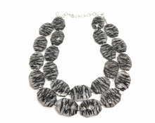 An instant classic! Black chunky beaded necklace that matches almost everything, and can be dressed up or down. These beads fade a kind of fishnet / black lace vibe that is sexy but chic!