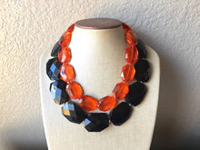 Black & Orange Necklace, multi strand jewelry, big beaded chunky statement necklace, blue necklace, bridesmaid necklace, bib necklace