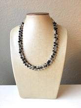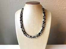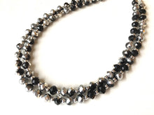 A double strand of black and silver ombré glass crystals. Each Bead is laser cut with lots of facets (more facets = more shine!) and spaced with a delicate silver spacer bead.