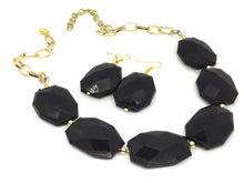 Black Statement Necklace & Earrings, black jewelry, Your Choice GOLD or SILVER, black bib chunky necklace, black geometric necklace