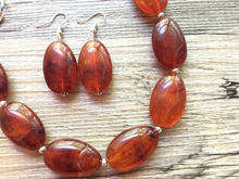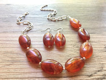 Amber Statement Necklace & Earrings, amber jewelry, Your Choice GOLD or SILVER, amber brown bib chunky necklace, brown oval necklace