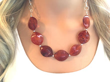 Amber Statement Necklace & Earrings, amber jewelry, Your Choice GOLD or SILVER, amber brown bib chunky necklace, brown oval necklace